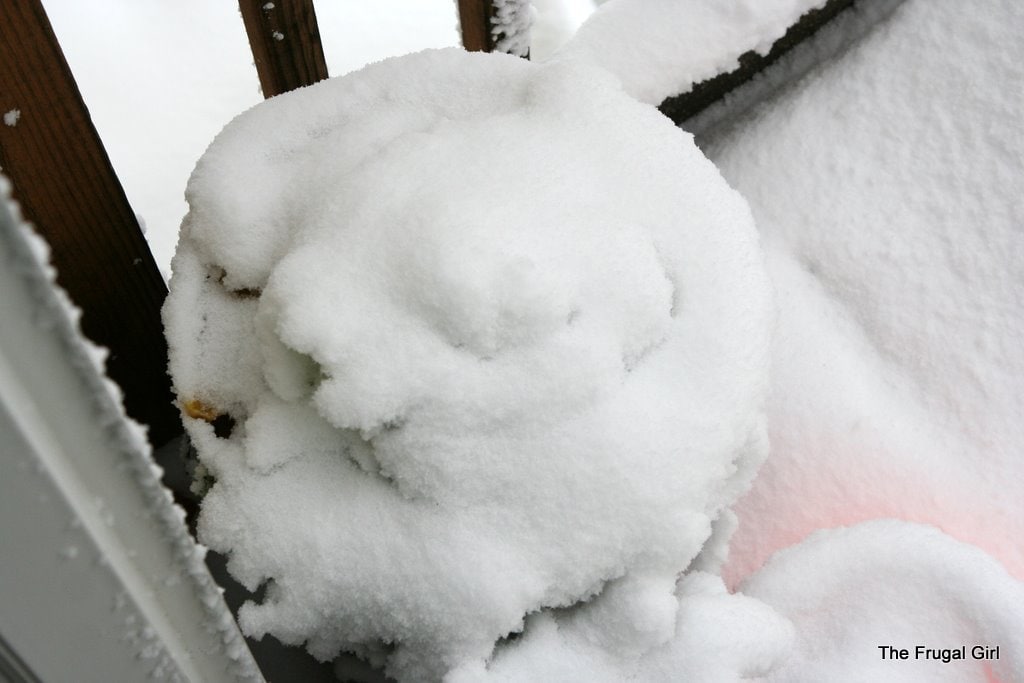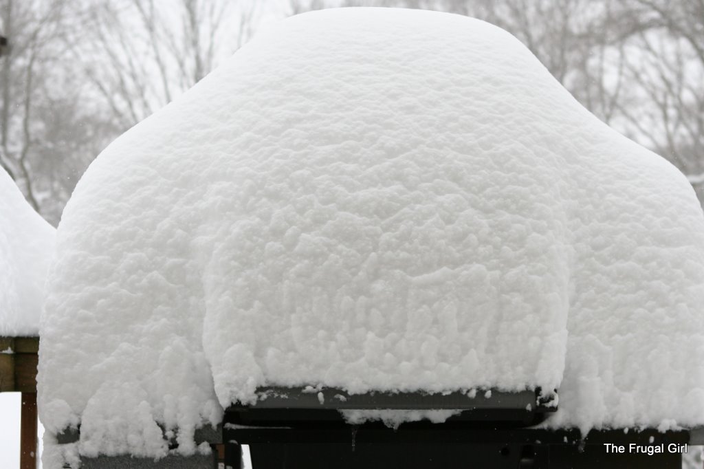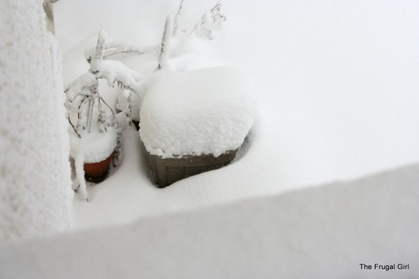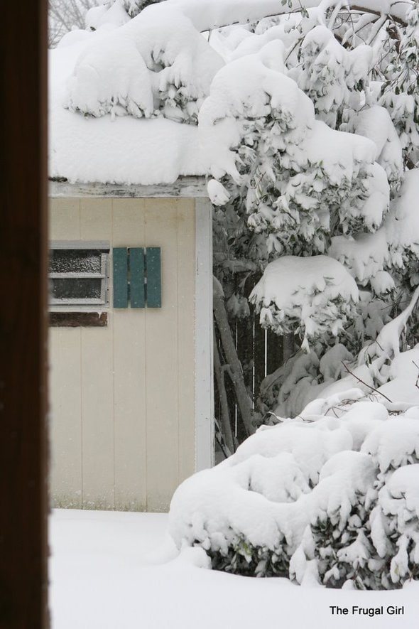 And it will stay there, looking wintery, for a while, because my compost bin is kind of buried in snow. See it down there?