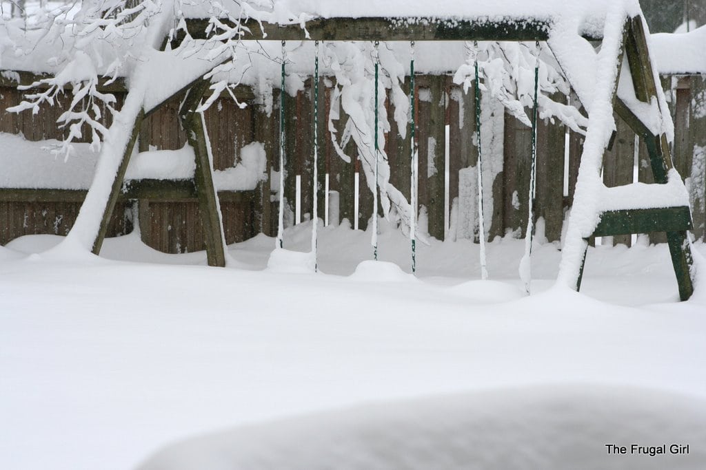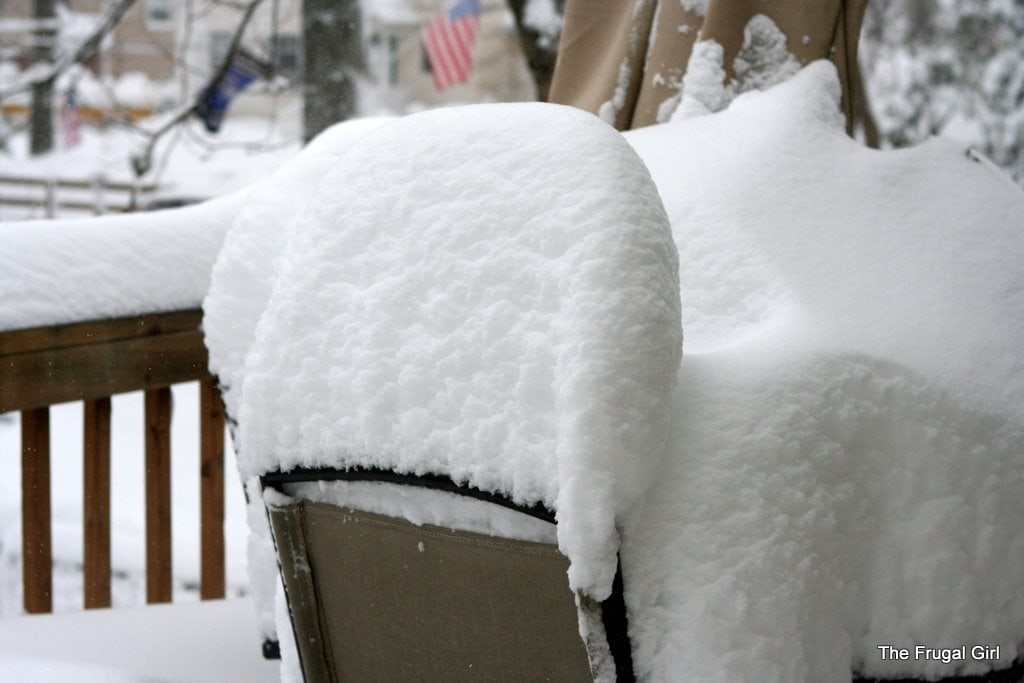 I like the way the snow covers everything in a smooth layer and makes all your garden furniture just appear as vague shapes.