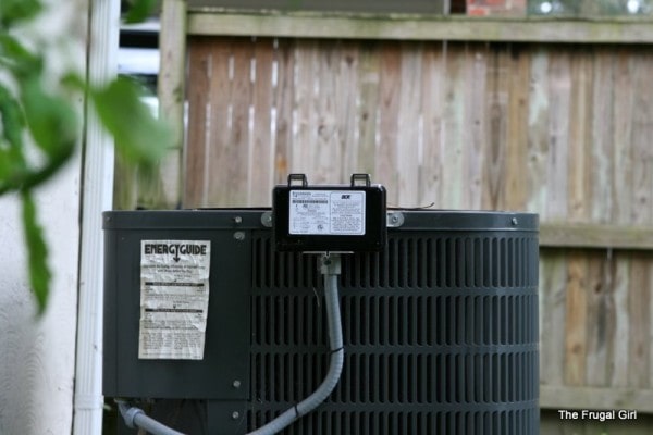 This is my heat pump, which has a device on it which allows my power company to cycle it off during times of peak summer usage. I got a $50 credit on my bill for four months this summer just for allowing them to install it. And we had such a cool summer, I don’t think it turned on even once.