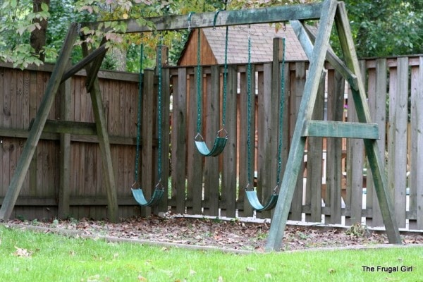 And lastly, here’s my children’s swingset. Our former neighbors gave it to us when they were upgrading. All we had to buy were the swings themselves.