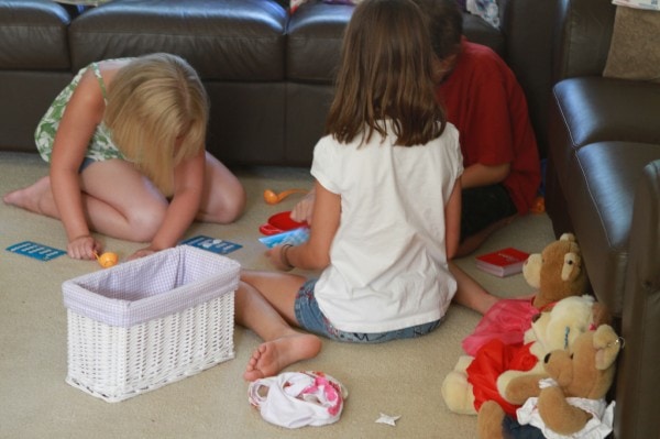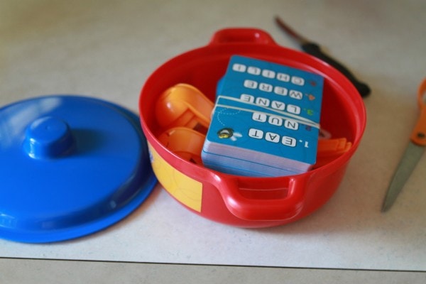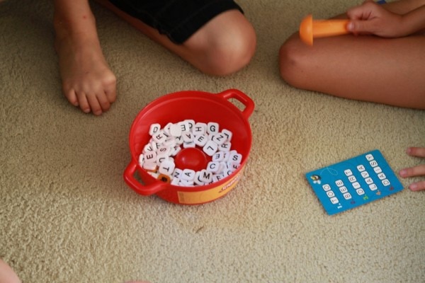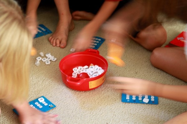 My older kids are faster than Sonia and Zoe, so I make them choose harder words and Sonia and Zoe get to pick the three-letter words. It’s more fair that way. 😉