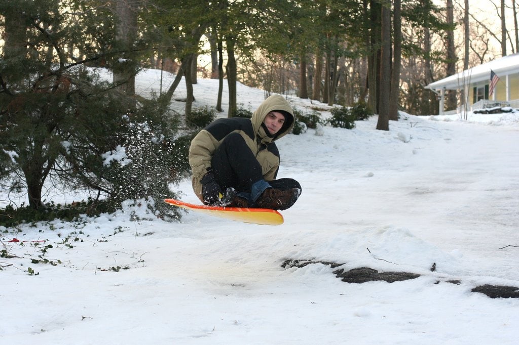 There’s a jump at the bottom of the hill, and because of my bruised rib, today I occupied myself by taking pictures of people going off the jump (going over a sledding jump just wouldn’t feel good!).