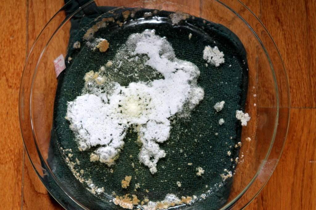 Take the now-hot pan out of the oven. The butter should be melted, but if it’s not, you can leave it in for a few more minutes.