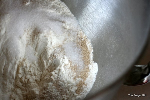 As with most of my recipes, this one starts with flour, sugar, yeast, and salt.