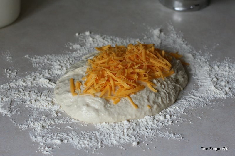 (Alternatively, you can stir the cheese into the dough before you turn it out onto the floured surface. This will break up the cheese a bit more, but it’s an awful lot easier.)