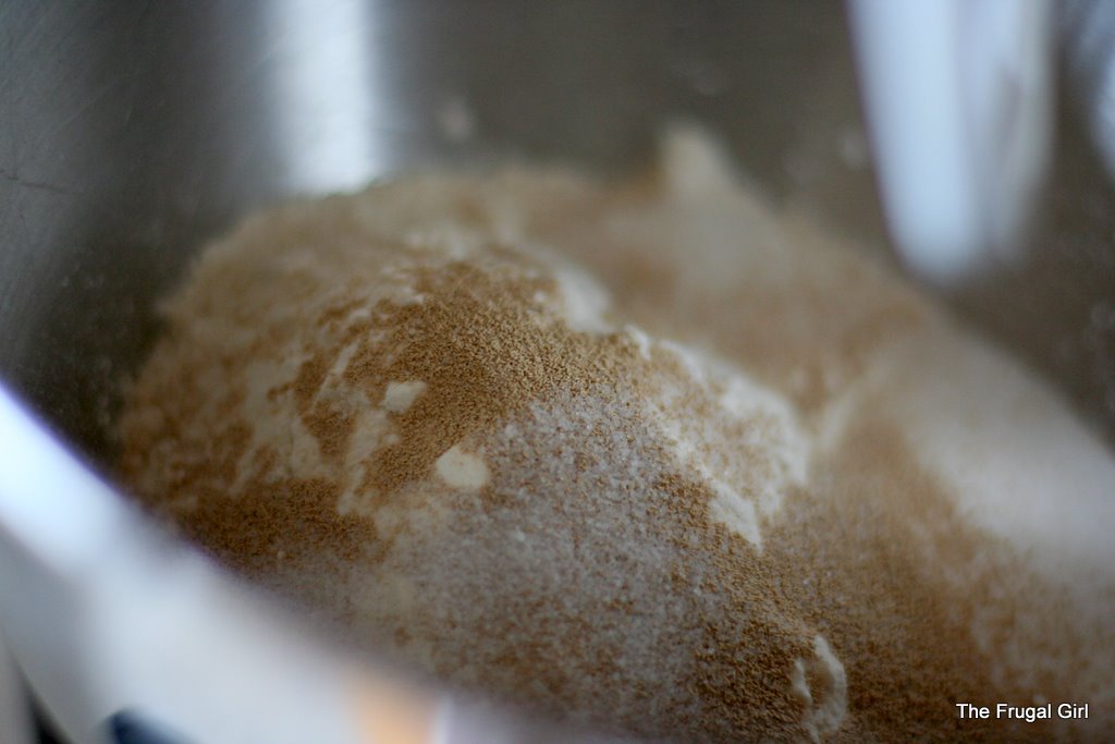 This recipe is from a newer Fleischmann’s Yeast cookbook that I got for free somehow a number of years ago. Actually, it was a lot of years ago, as I know I had this for a while before I got married (I was the sort of weird teenager who sends away for yeast baking freebies!), and it’s been 12 years since I tied the knot (or, more appropriately, since we tied the knot).