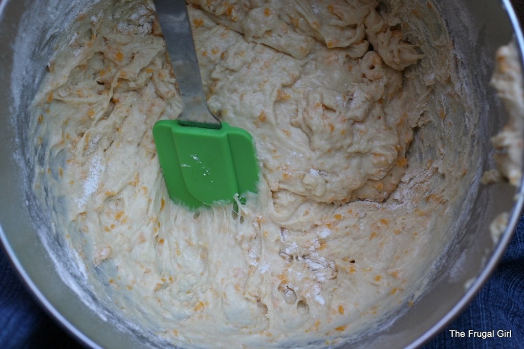 Start by grating 1.5 cups (6 ounces) of cheddar cheese. You can use sharp or mild, depending on your preferences, or you could even substitute another kind of similarly-textured cheese (Swiss, Monterey Jack, etc.).