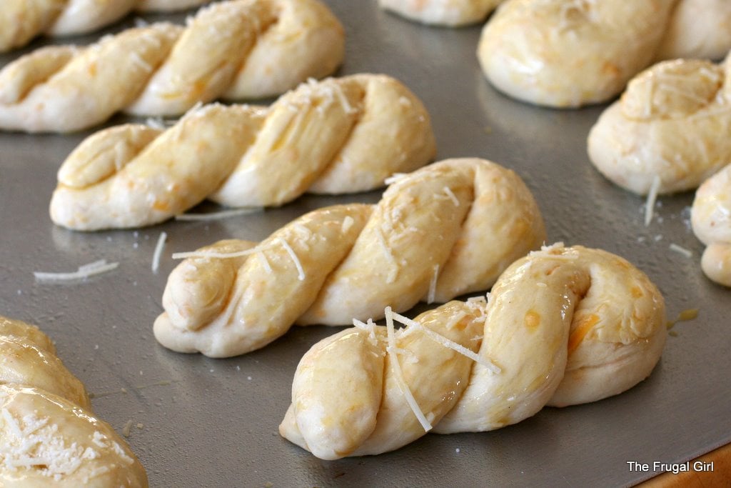 If you want, you can sprinkle the twists with a little bit of grated Parmesan cheese. This is completely optional, though, and is mostly for looks.