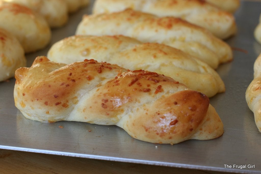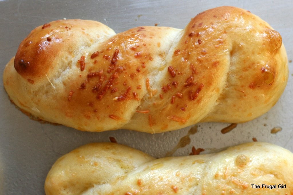 In perusing through the blog for the hamburg roll recipe that I want to try today with my daughter really coming to visit, I came across this recipe for cheddar twists. I loved the cheddar twists that were sold by Dunkin' Donut for a while.. It will be a two-fold learning--whether the rolls are what I would like and how to braid. So far the dough for the hamburg rolls has a nice feel (texture) after the first kneading. I only have done a 1/2 recipe for today. If they turn out well, I will make them to freeze. We are ordering another 25-lb bag of flour ($11) from a local food supply house that is having periodic pop-ups and I found 1-lb pkg of yeast for $5, so we are ready to do breads. And I bought some (seriously sharp) cheddar on sale when I was out in society yesterday. Thank you.