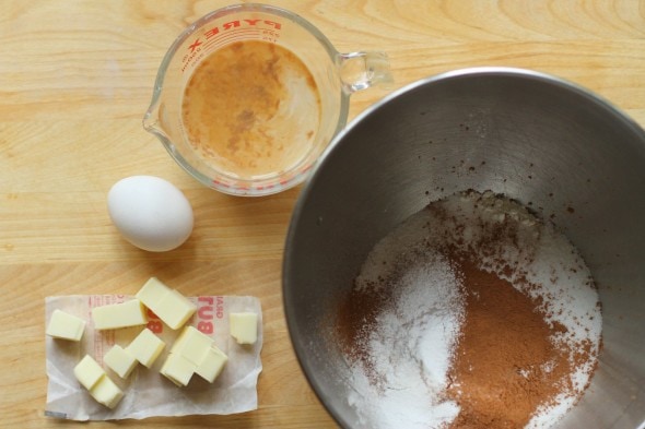 The ingredients listed here make one 9-inch round cake…however, when I took these pictures I was making two cakes (I just didn’t want you to be confused when you saw two eggs and a whole stick of butter in the pictures!)