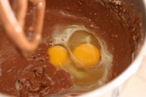 Mix the dry ingredients, beat in some wet ingredients, beat in the eggs, and your cake batter is ready to bake!