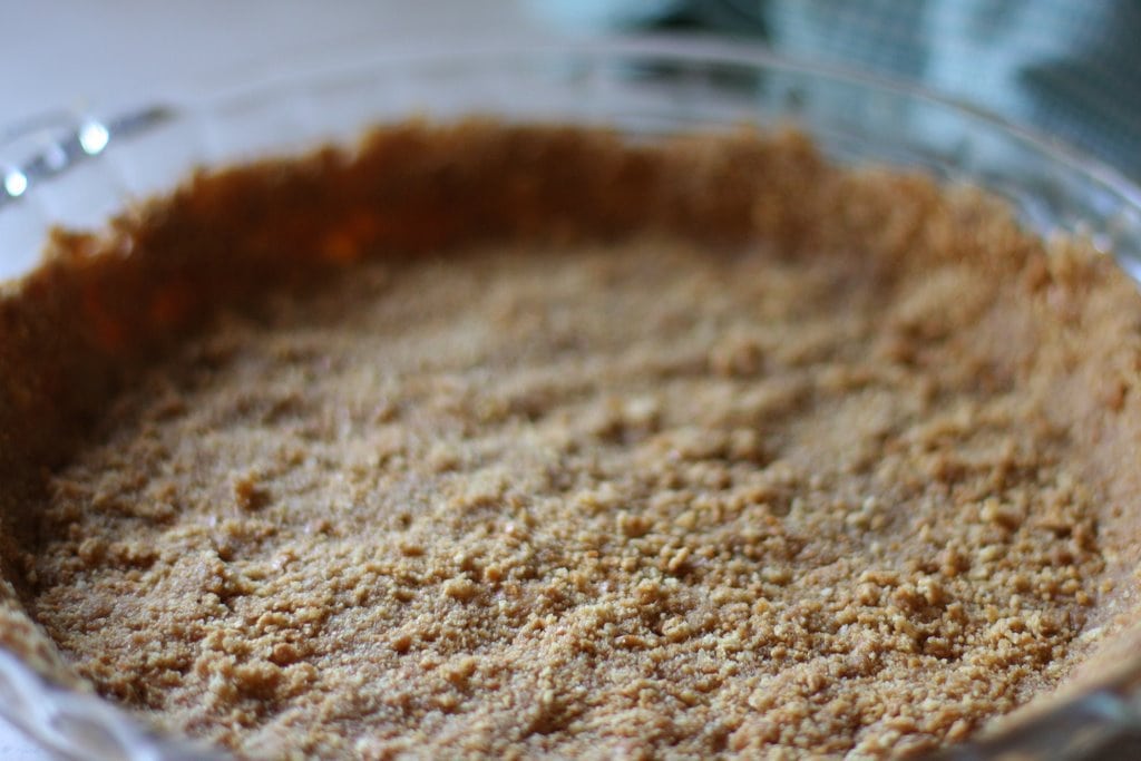 Now, the original recipe had a very pathetic crust which basically involved putting dry crumbs into a pie plate and then spraying them with non-stick cooking spray to hold them together.
