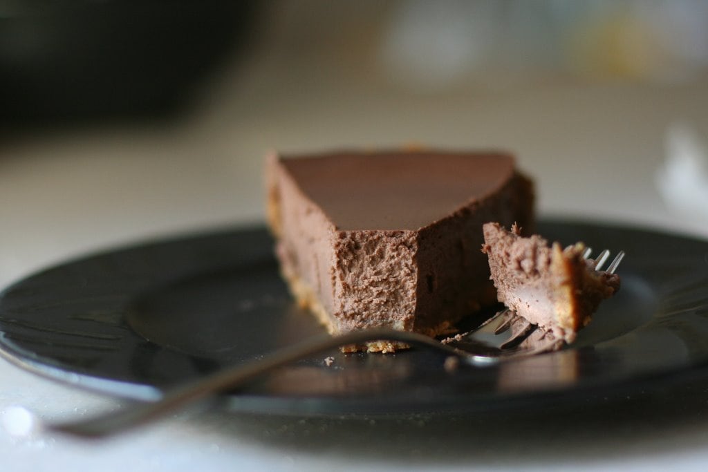 The recipe suggests topping this with fruit, but I’m not a huge fan of a fruit and chocolate combo, so we usually enjoy our cheesecake unadorned. You can certainly dress it up with fruit or whipped cream if you’d like, though.