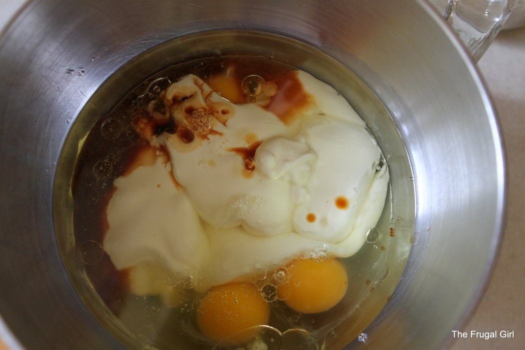 First, turn your oven on to 350 ° F so that it’ll be hot when your muffins are ready to bake. Then combine all the dry ingredients in a bowl.