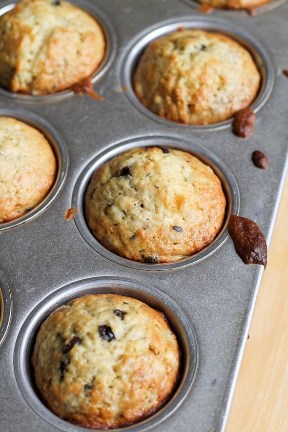 My kids aren’t enormously fond of plain banana muffins, so they really appreciate the chocolate chips in this recipe.