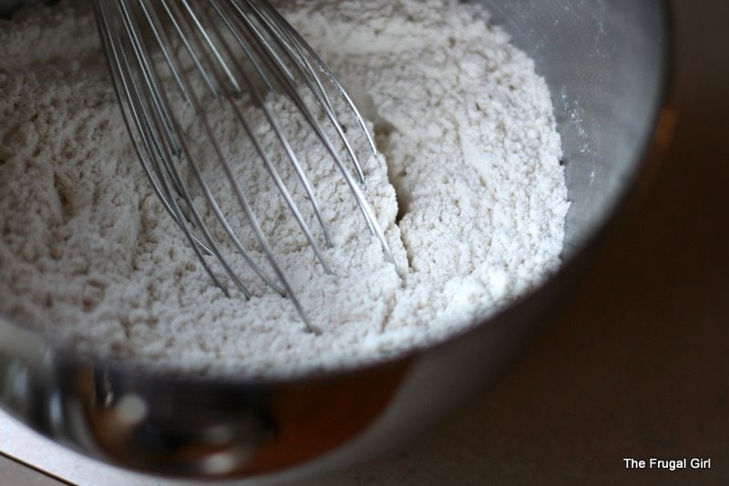 Because this coffeecake uses no yeast, the preparation is about as simple as that of muffins. You mix the dry ingredients together: