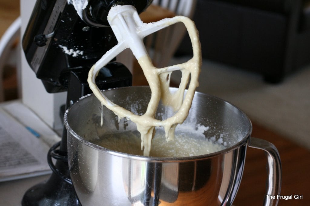 Add the warm milk mixture to the yeast mixture along with about 3 cups of the flour. Beat for several minutes.