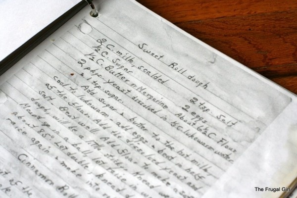 The dough recipe is from my grandma, my dad’s mom. She hand-wrote a lot of her recipes down and put them in an notebook for my dad when he left home, and this recipe is one of those. I have a scanned copy of it in my recipe binder, and I love to look at this recipe written in my grandma’s handwriting.