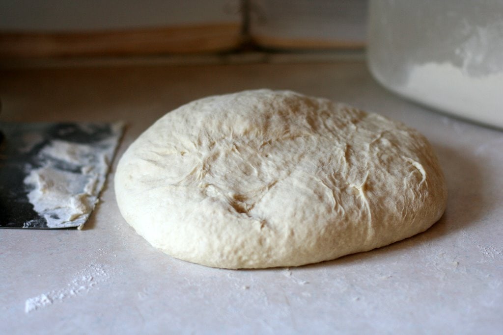 There are two different ways to shape the knots, but for either method, you’ll need to divide the pizza dough in half.