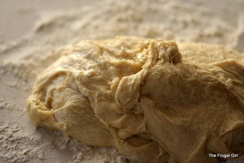 4. Add enough flour to make a kneadable dough, and turn out onto a