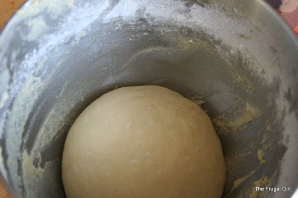 4. Add enough flour to make a kneadable dough, and turn out onto a floured surface. Knead 3-5 minutes or until smooth and elastic. Place in bowl, cover with a wet tea towel, and let rise 1 hour.