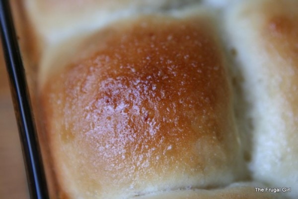 Punch dough down and divide into 24 pieces. Roll each piece into a ball and place into pans. You can use two 8×8 inch square pans…