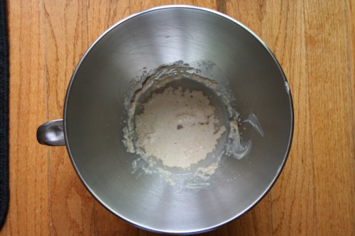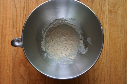 While the yeast and water are standing, combine milk, butter, sugar, and salt, and heat in the microwave until lukewarm(105 degrees F). By the time that’s done, the yeast should look like this: