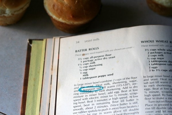 So, then yesterday after I taught piano for most of the day, I decided that I’d make some whole wheat rolls to go with dinner (oddly enough, that’s the recipe right next to the Batter Roll recipe in the above photo!). I vacillated a bit, not sure I had time to get this done and still get dinner ready on time, but then just decided to go for it.