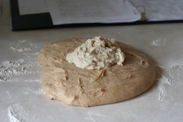 So, I dissolved some yeast in some warm water, added some flour, kneaded that mixture into the dough, and carried on.