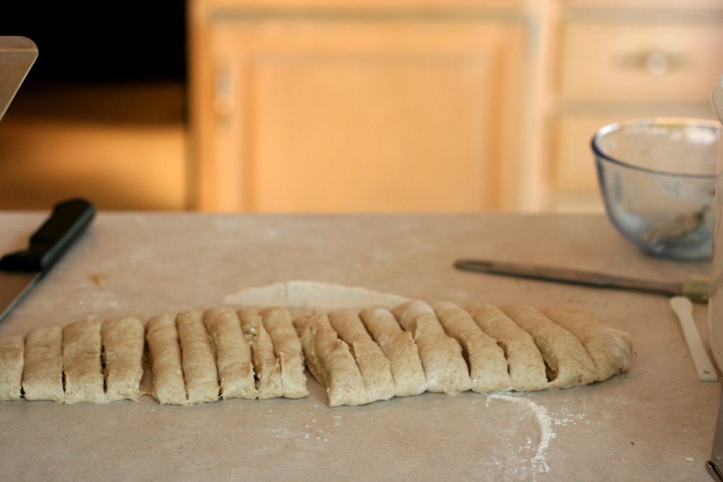 Fold the dough into thirds (like we do with Cinnamon Twists), and cut into strips.