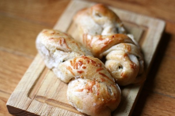 This recipe, like the one for Garlic Pull-Apart bread, is not a start-to-finish bread recipe. Instead, it’s a way to fancy-up a pound of regular bread dough.