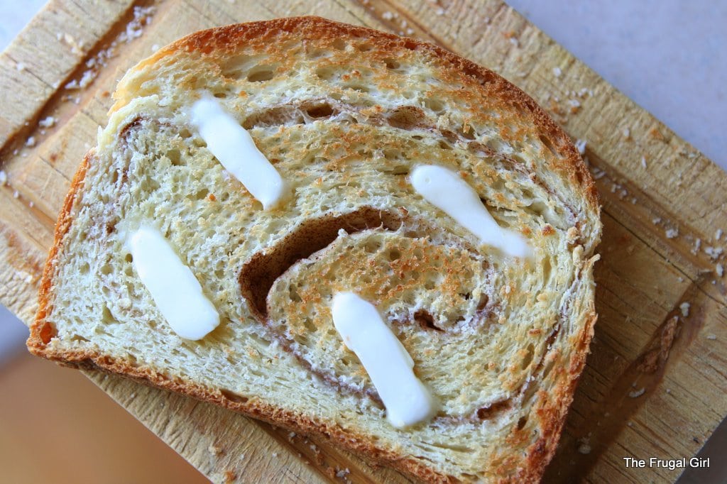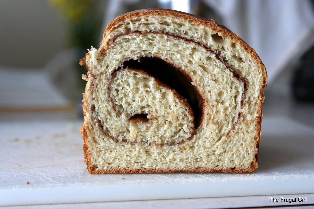 Most breads are difficult to slice when they’re hot, and cinnamon swirl bread is especially difficult to manage when it’s hot. So, be patient and let it cool to room temperature before you try to slice it up.