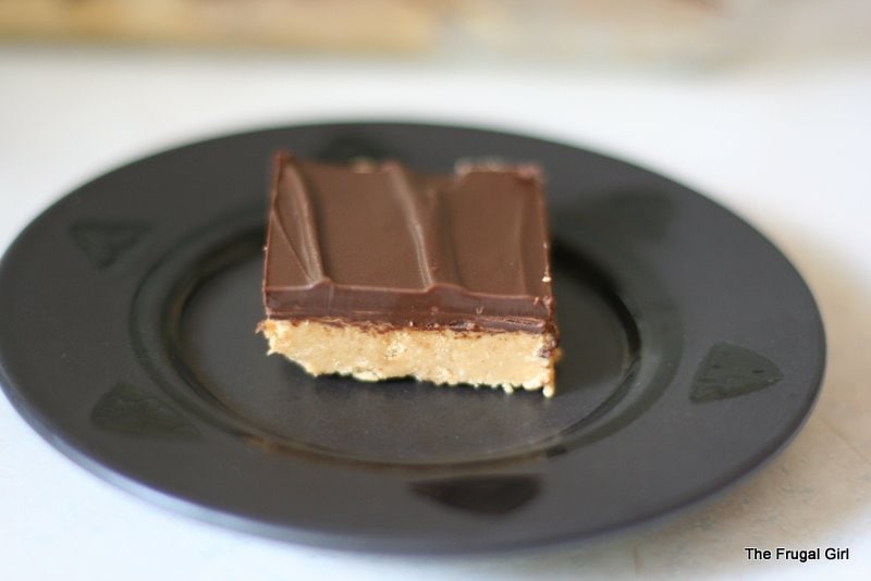 These bars/candy are somewhat reminiscent of Reese’s Peanut Butter Cups, except that they are square and have no fancy wrapping. And though they are candy-like, there’s nothing at all complicated about making them.