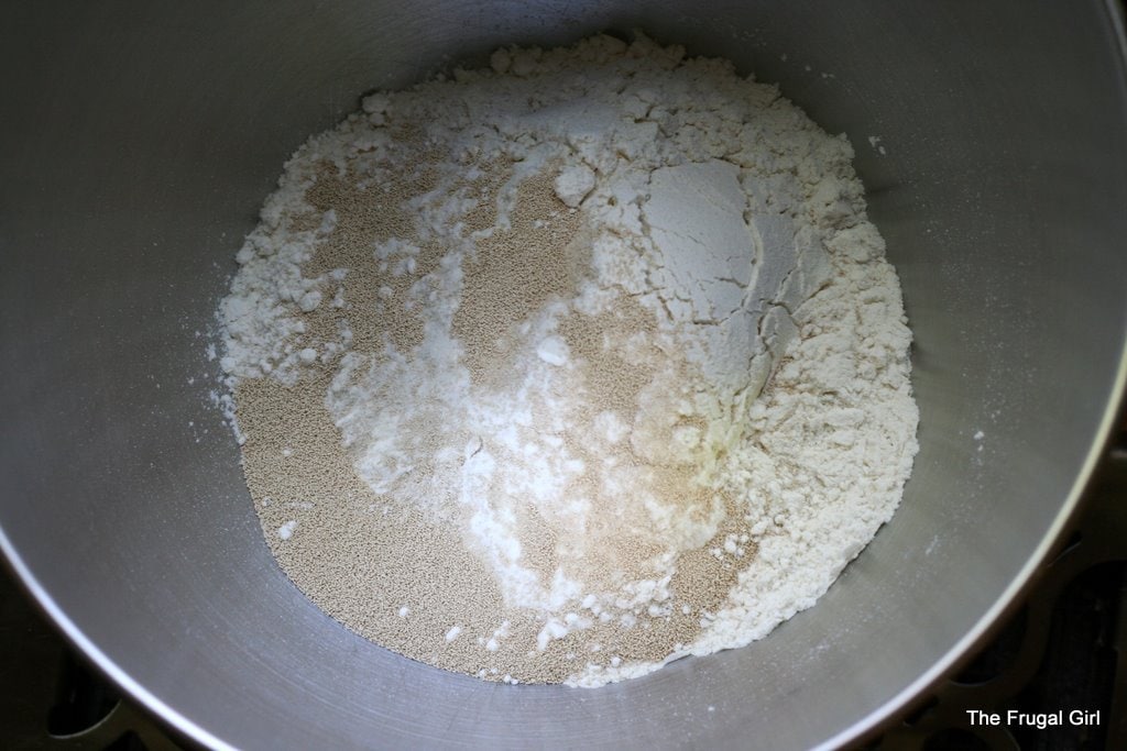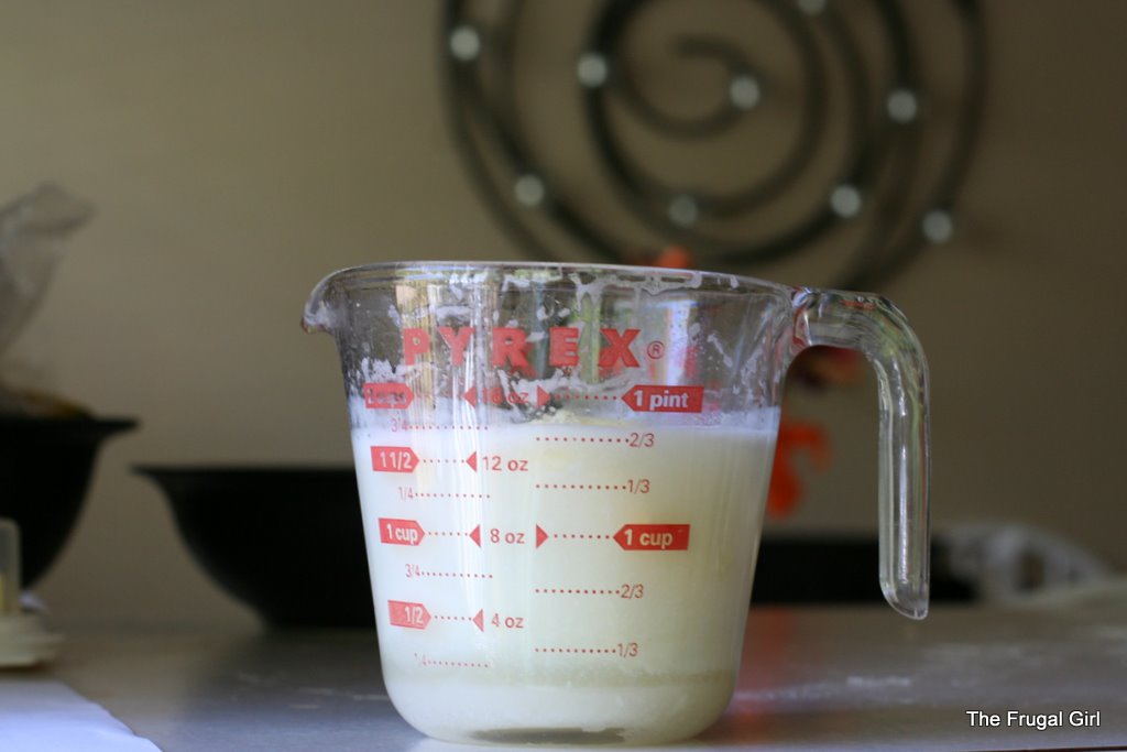 To that, you add a mixture of warm milk, butter, salt and sugar. To make things simple, I combine all of this in a glass measuring cup and microwave it until it’s 120 degrees.