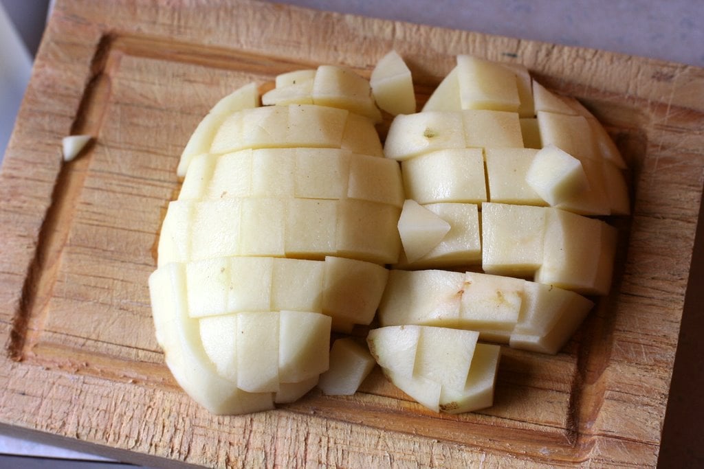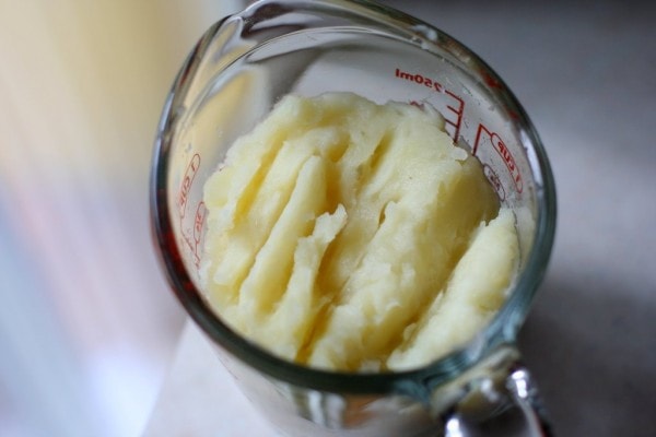 If you have leftover mashed potatoes, this is definitely a great time to use them. But you can also mix up a plain batch of mashed potatoes by peeling, cubing, and boiling them until they’re tender. Then just mash them up without bothering to add the normal mashed potato ingredients, like salt, butter, or milk.
