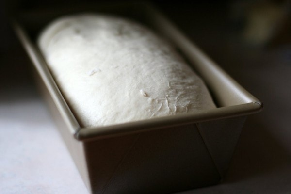 Place dough in bowl, cover, and let rise 1 hour. Punch dough down, divide in half, and shape each half into a loaf. Place in 4×8 inch loaf pans, cover, and let rise 30-45 minutes, or until doubled.
