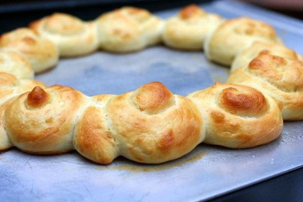 If you choose to place the rolls in rows instead of in a ring, you’d want to reduce the baking time a bit so that you don’t overbake your rolls. And if you’ve opted to make 12 large rolls, you’ll probably need to bake them for 20-25 minutes.