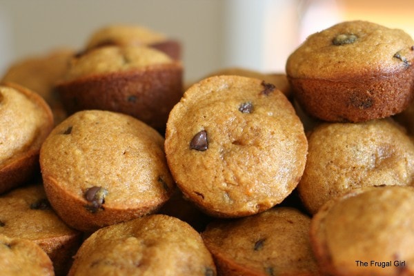 This makes 36 smallish muffins, which is not an inordinate number for our family. If you have a smaller family, though, you can cut the recipe in half or simply freeze any extra muffins.