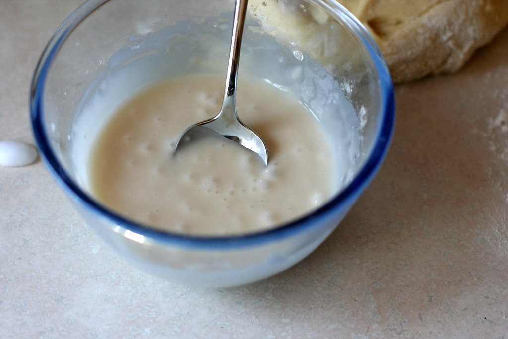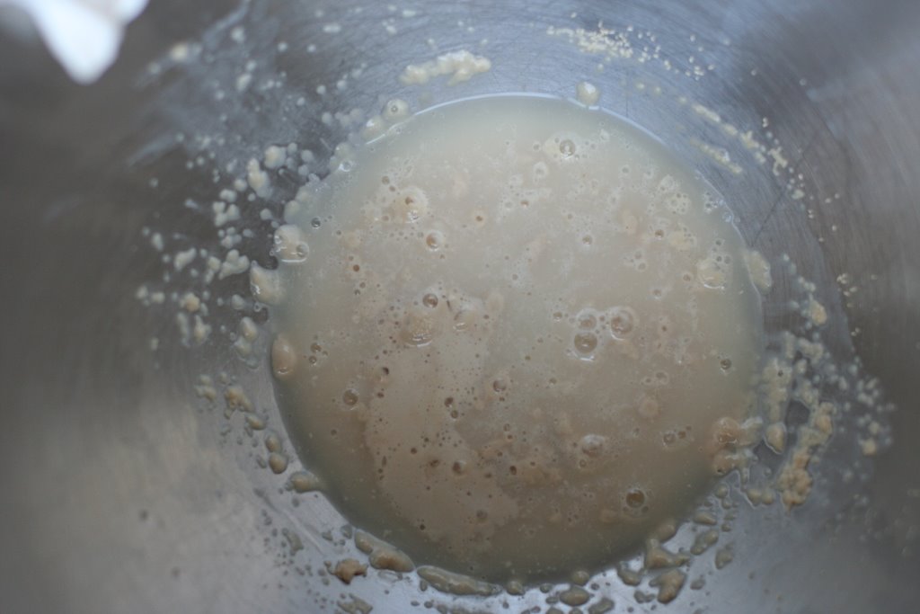 Ok! To make the dough, dissolve the yeast in the warm water.