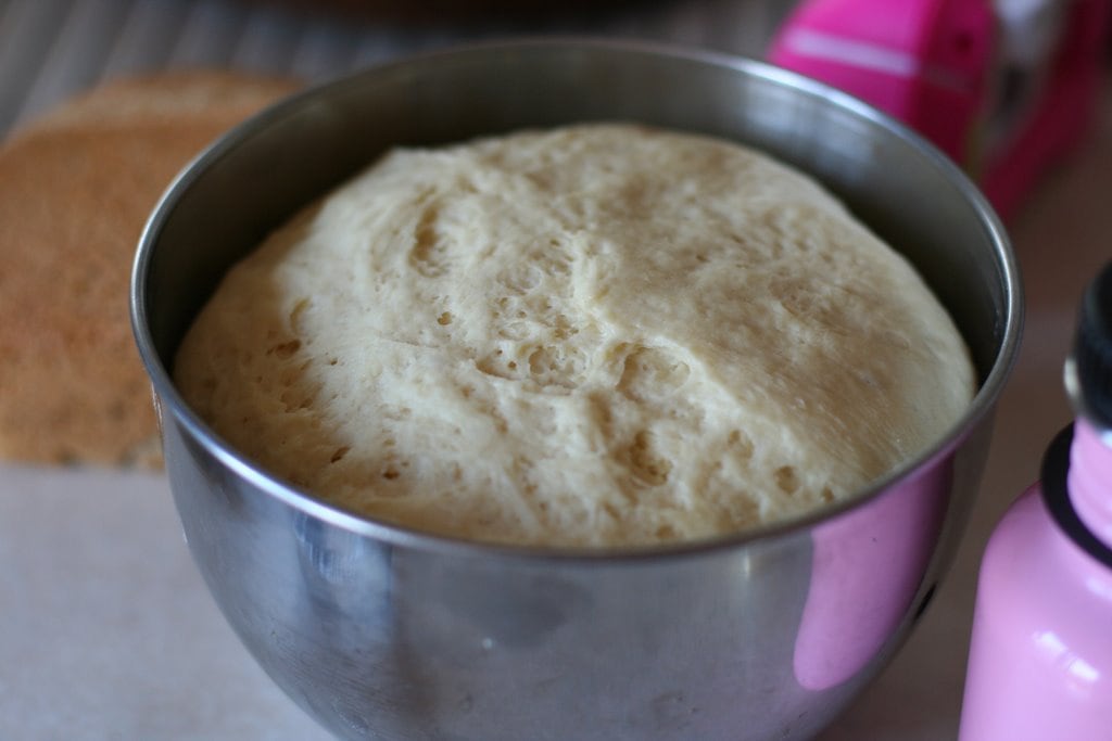 Place the dough into a bowl, cover with a wet tea towel, and let rise for 1 hour and 15 minutes.
