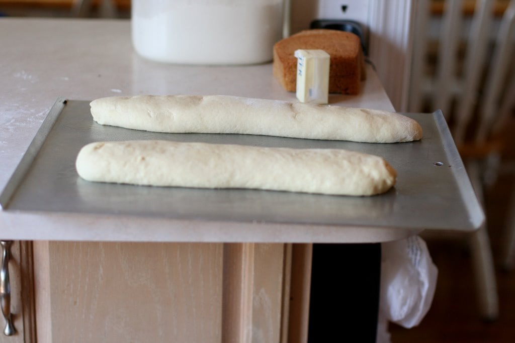 Place the dough rolls, seam side down, on a greased baking sheet. (‘scuse the blurry picture. I had a focusing fail.)