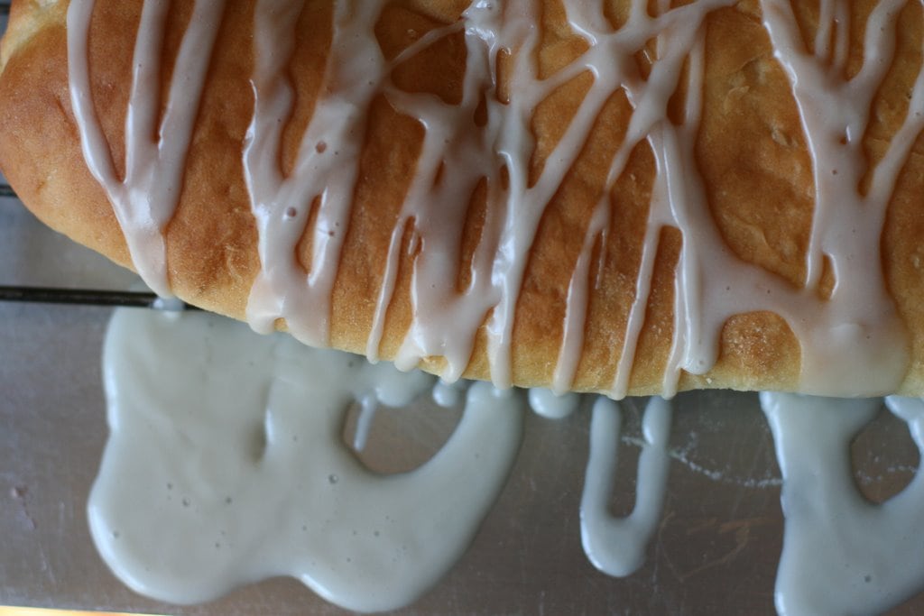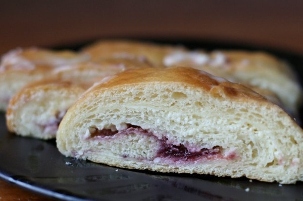 At least, mine did. And that may have been caused by me storing the loaves in the fridge overnight. I’m not positive that was necessary, but given that they have cream cheese filling, I didn’t think leaving them out overnight was a good idea. What do you guys think?