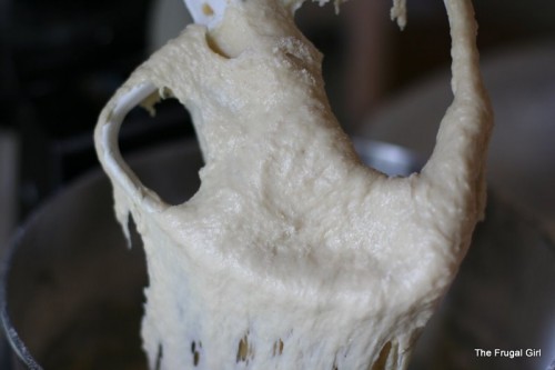 Add enough additional flour to make a soft, but kneadable dough. See how the dough is stretchy? That’s the gluten at work.
