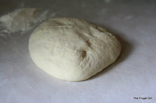 I think I took this picture partway into the kneading process, because my dough NEVER looks that neat when I first dump it onto the counter.