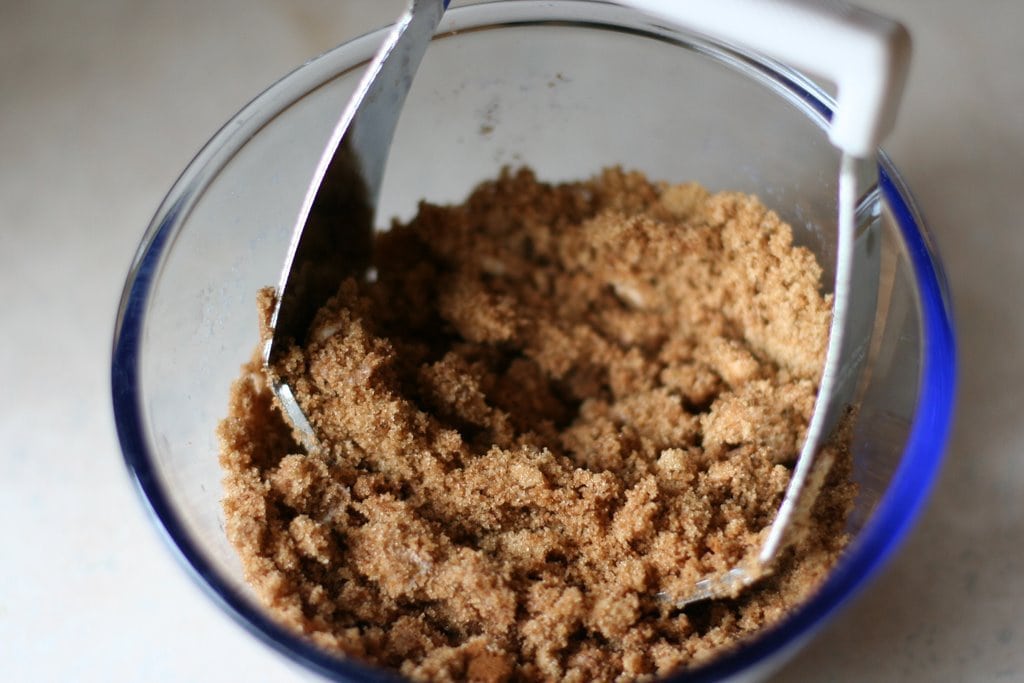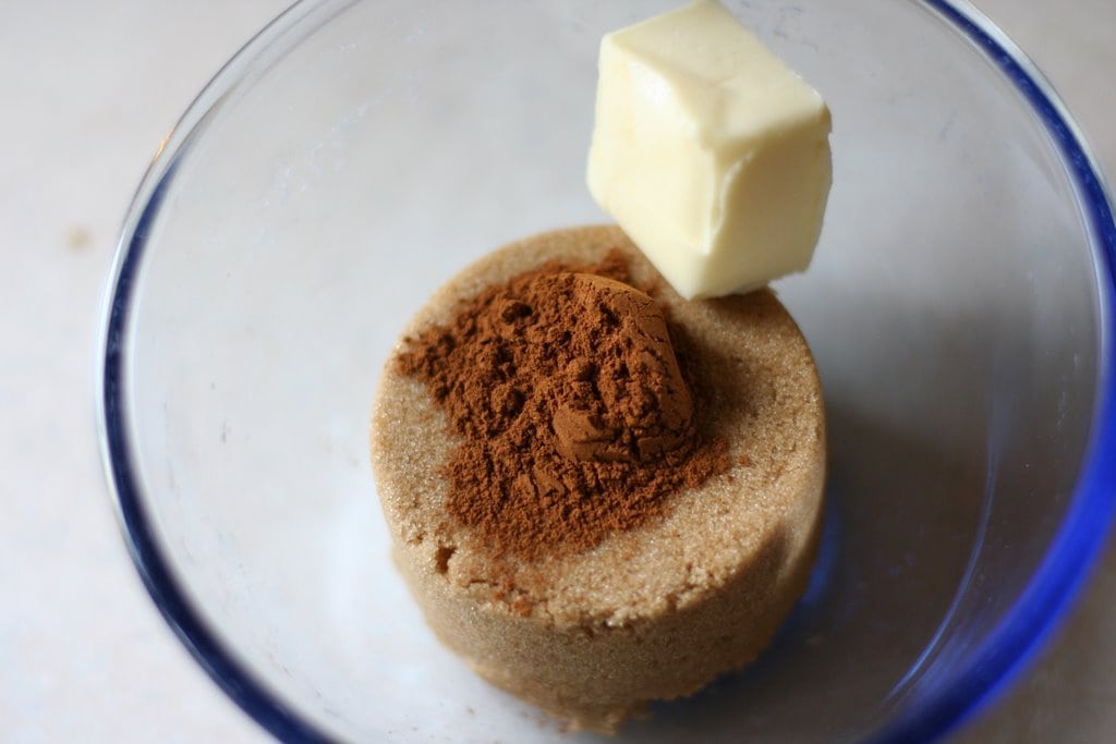 To make the streusel topping, you’ll need butter, brown sugar, and cinnamon.