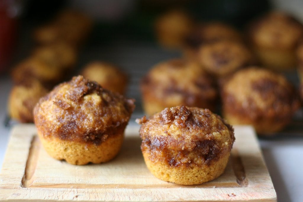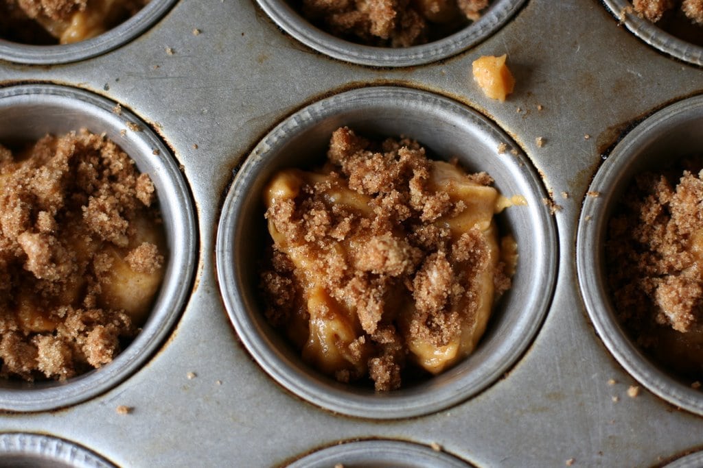 Spoon the muffin batter into greased muffin tins and top with the streusel. I usually make 12 regular muffins and 12 mini muffins, but you could make 18 regular muffins instead.