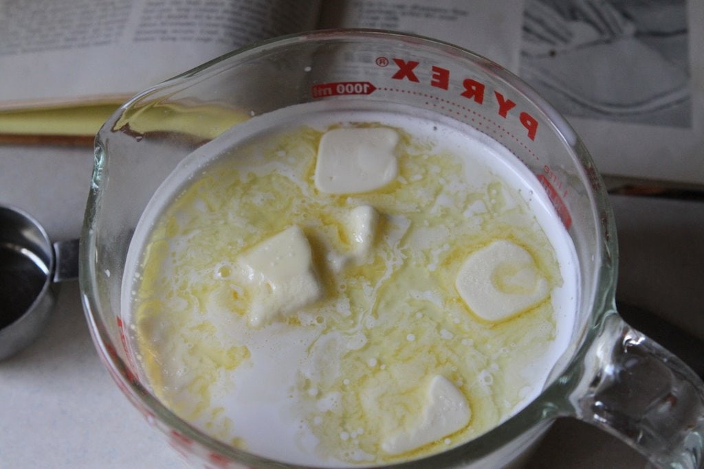 In a large mixer bowl, combine 3 cups of the all-purpose flour and the yeast. Heat milk, sugar, butter, and salt to 115-120 ° F. Add warm liquids to dry ingredients and beat for 3 minutes.