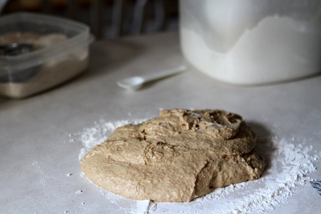 and enough whole wheat flour to make a soft dough. Turn the dough out onto a floured counter and knead until the dough is smooth and elastic.