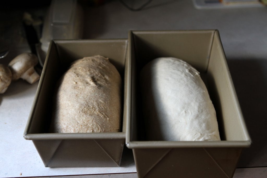Place the loaf, seam side down, into a greased 4×6 or 5×9 inch loaf pan. Repeat with remaining dough.