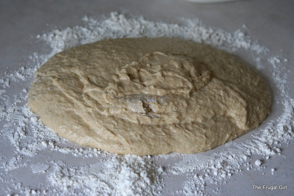Add enough all-purpose flour to make a soft but kneadable dough. I kind of misjudged how soft my dough was this time around…I would not recommend trying to knead dough that is this gloppy if you are a beginner baker!